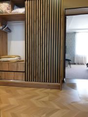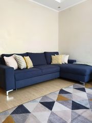 Спальные места рассчитаны для комфортного проживания 6-7 человек. В спальне — 2-ух спальная кровать и диванчик полуторка/ в зале-угловой диван и диванчик односпальный.