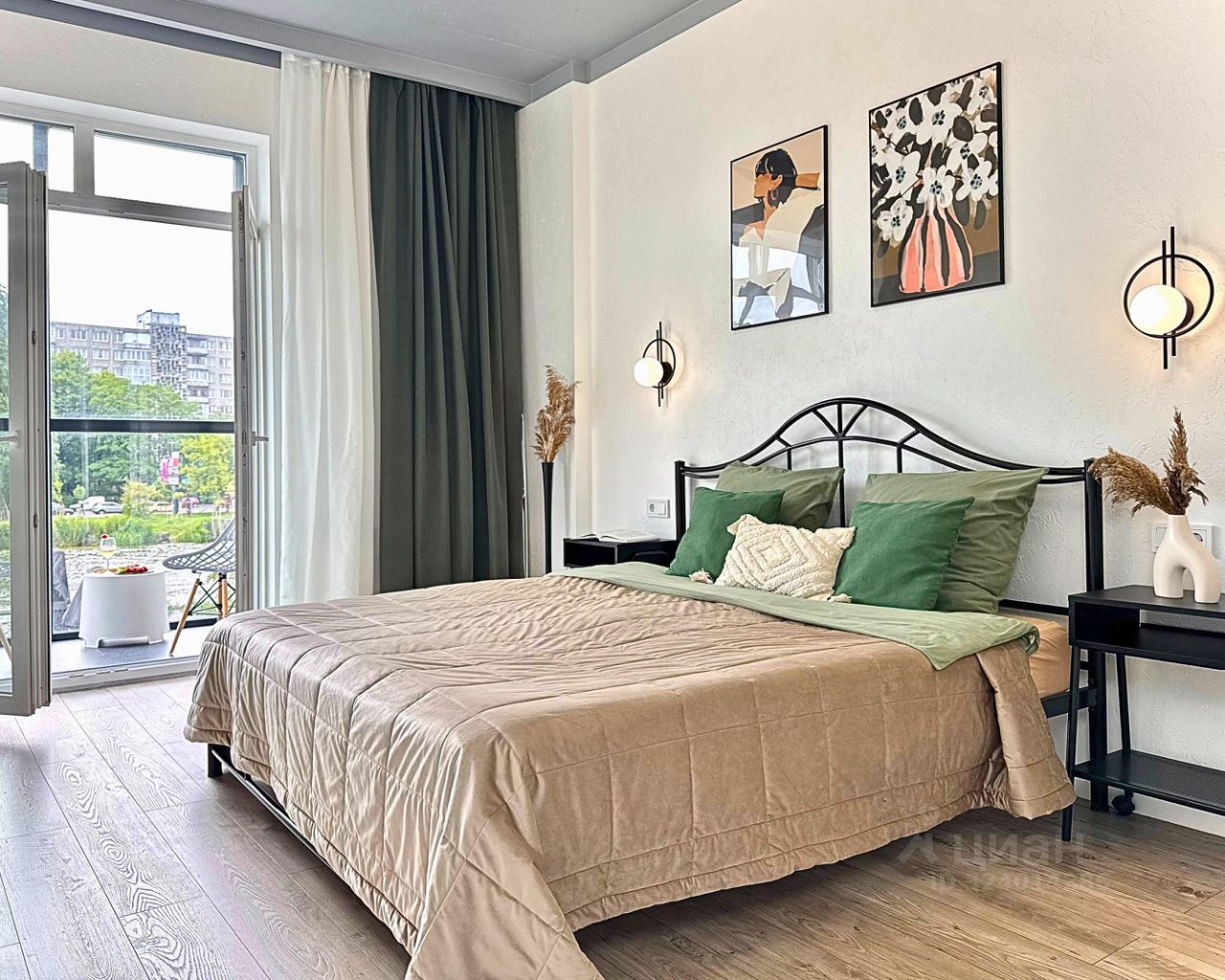 Стильная студия с балконом и видом на реку в Рыбной Деревне