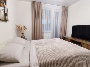 В квартире могут разместиться от 1 до 5 гостей, для которых имеется двуспальная кровать, двуспальный раскладной диван и односпальное кресло-кровать. Все спальные места в изолированных помещениях (спальня, кухня-гостиная, отапливаемая лоджия).