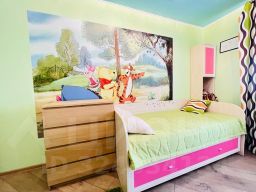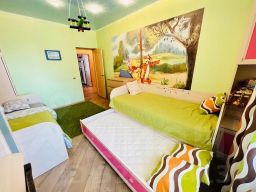 Две комнаты — одна из них детская с игрушками и тремя удобными спальными местами (90х200), чтобы ваши малыши спали как ангелы, а вы — как короли на диване.