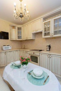 Квартира укомплектована всем необходимым кухонным оборудованием: индукционная плита с духовкой, вытяжка, микроволновка, большой холодильник, посудомоечная машина, стиральная машина, два телевизора (на кухне и в комнате), полностью меблирована. А раскладной кожаный диван на кухне может решить некоторый вопрос по раздельным или дополнительным спальным местам.