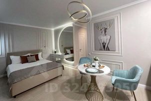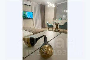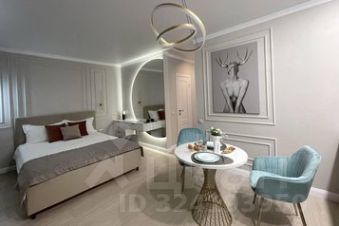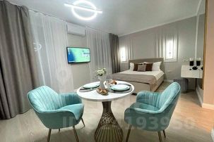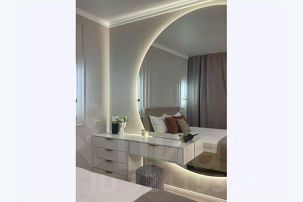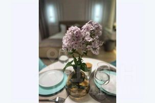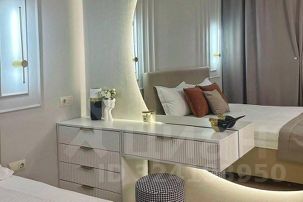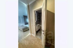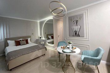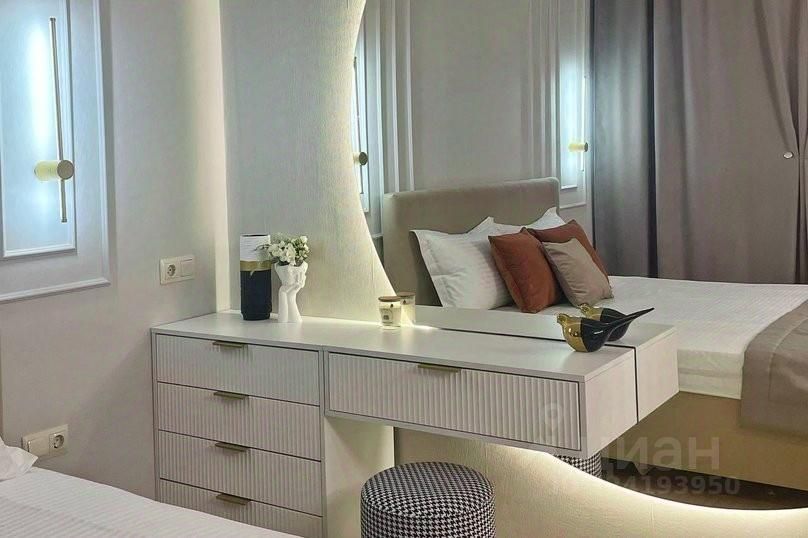 В квартире сдержанный интерьер в светлых оттенках, новая кровать, микроволновка, кондиционер, холодильник, ванна со свечами и белоснежное постельное белье.
