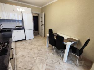 Квартира с дизайнерским ремонтом, полностью готова к проживанию. В ней есть все необходимое для комфортной жизни: просторная кухня площадью 15 кв.м, оборудованная современной техникой, включая холодильник, посудомоечную и стиральную машины. В комнате и на кухне установлена удобная мебель. Ванная комната оснащена душевой кабиной. Высота потолков составляет 2.7 метра, что добавляет объема и света.