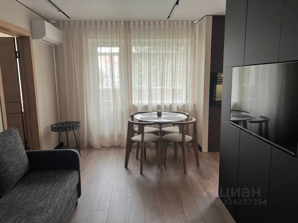 Кухня-гостиная с раскладывающимся диваном и зоной отдыха.