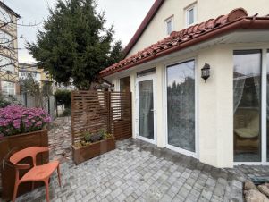 Собственная территория: небольшая преддомовая зона — ваше личное место для отдыха на свежем воздухе. Здесь можно выпить утренний кофе, подышать морским бризом или просто расслабиться после насыщенного дня.