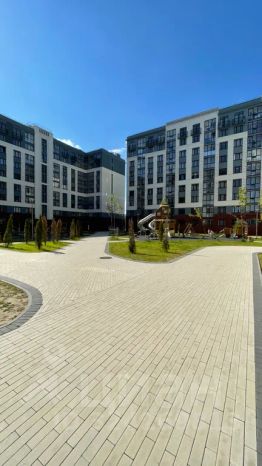 Во дворе жилого комплекса хорошая современная детская площадка.