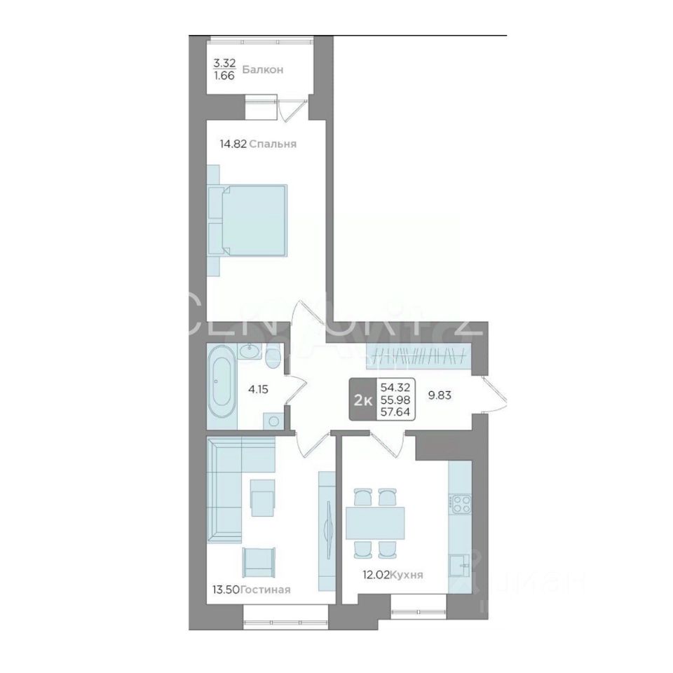просторная 2-комнатная квартира общей площадью 57 м² | новый ремонт | автономное отопление