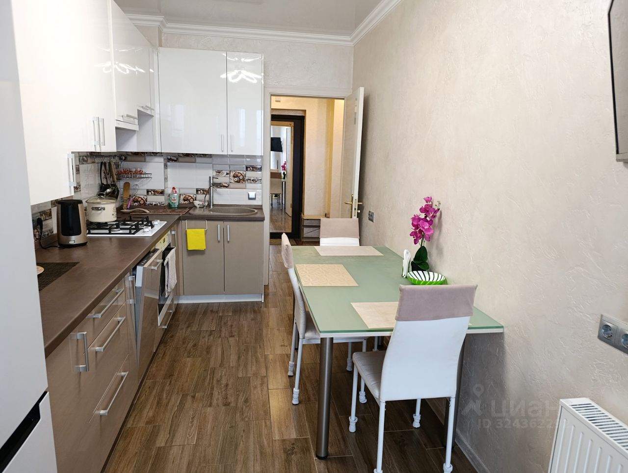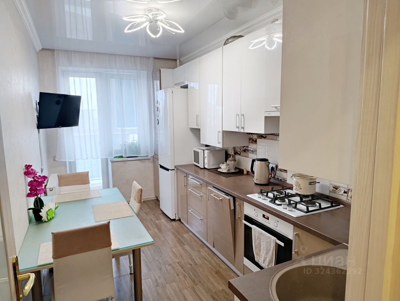 Просторная кухня и большая лоджия с выходом из комнаты и кухни.