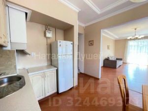 Общая площадь квартиры 90 кв.метров, гостиная объединена с кухней через арку, спальня изолирована;