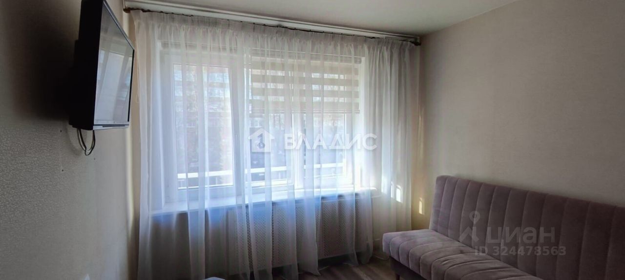 Комната разделена на две небольшие комнаты, есть возможность поставить ещё один диван или сделать кабинет