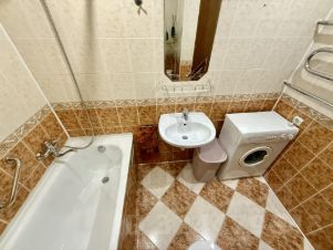 Сан.узел - совмещений в кафеле , произведен косметический ремонт. Ванная чистая и сухая. Теплый пол . Стиральная машинка.