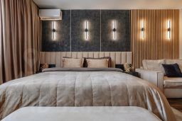 В апартаментах к вашим услугам: двуспальная кровать 180/200, кресло-кровать 140/200, вся бытовая техника, автономное отопление, Тв-смарт 65 диагональ ( в гостиной и столовой), кондиционеры сплит-система (в гостиной и столовой), стиральная машина, тропический душ, посудомоечная машина, кофемашина капсульная, микроволновая печь, фен, утюг, гладильная доска, камин, Wi-fi, мини-бар (платно), постельное бельё и полотенца премиум-качества. Все средства личной гигиены предоставляются.