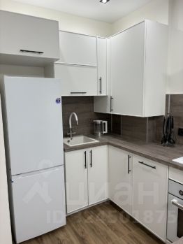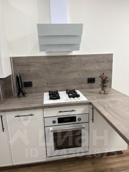 Кухня с современной бытовой техникой: варочная поверхность, духовой шкаф, посудомоечная машина, холодильник.