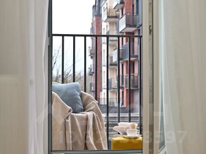 Уютный балкон со столиком — прекрасное место для утреннего кофе или вечерних посиделок.