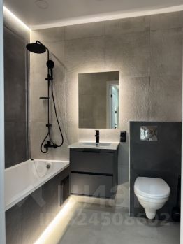 Мебель и техника. Санузел в плитке, выведены три подсветки, установлена инсталляция, стиральная машинка на 6 кг. На кухне: кухонный гарнитур с доводчиками и тп, индукционная варочная панель, мебель, посудомоечная машинка, электрический духовой шкаф, микроволновая печь, холодильник. В комнате: раскладной диван и большой комод с полками и ящиками, телевизор.