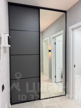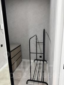 В холе есть отдельная гардеробная, которая спрятана за дверям купе, а в ней отдельностоящий комод и вешалка для одежды.