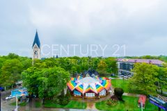 Панорамные окна и балкон с видом на Центральный парк Калинина и кирху Королевы Луизы.