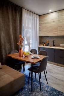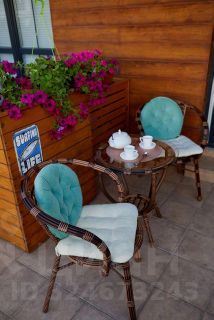 Квартира укомплектована: холодильником, стиральной машиной, посудомоечной машиной, микроволновой печью, индукционной плитой, чайником, пылесосом , гладильной доской, утюгом , сушкой для белья, телевизор 2 штуки 100 каналов, Wi-fi , автономное отопление . На террасе стоит садовая мебель и качель " Кокон".