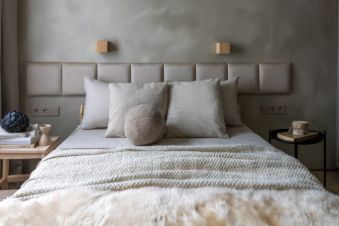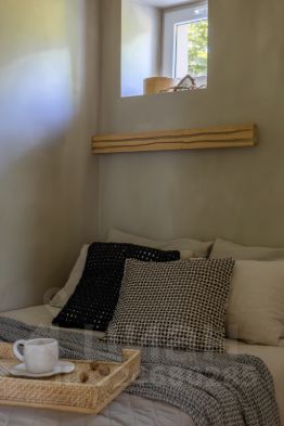 Новый высокачественный ремонт: в экологичном стиле Ваби Саби с натуральными материалами, квартира с видом на сосны.