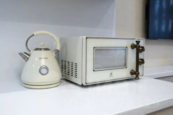 В квартире есть все необходимое: духовка, микроволновка, посудомойка, достаточное количество посуды, красивый сервиз.