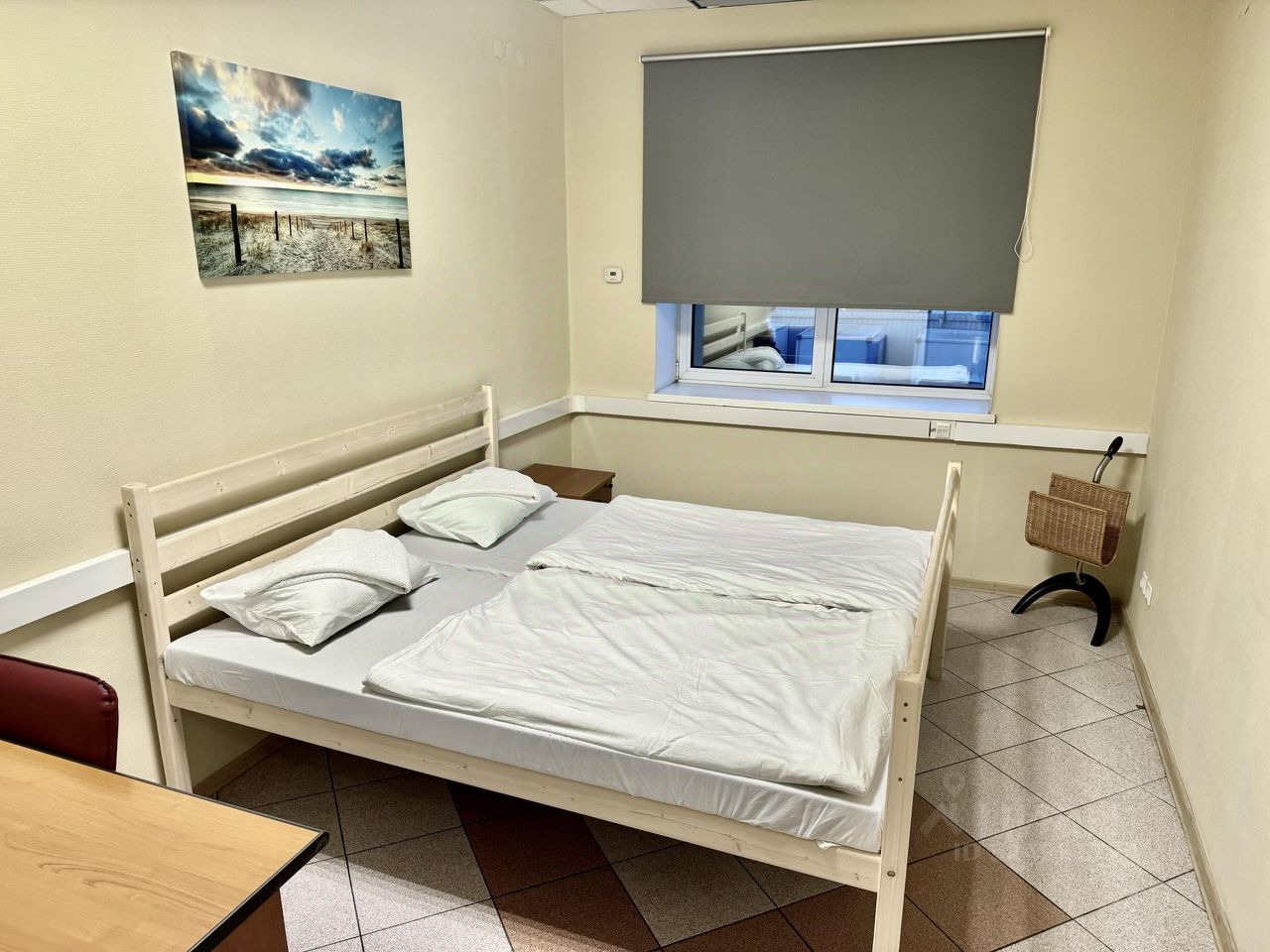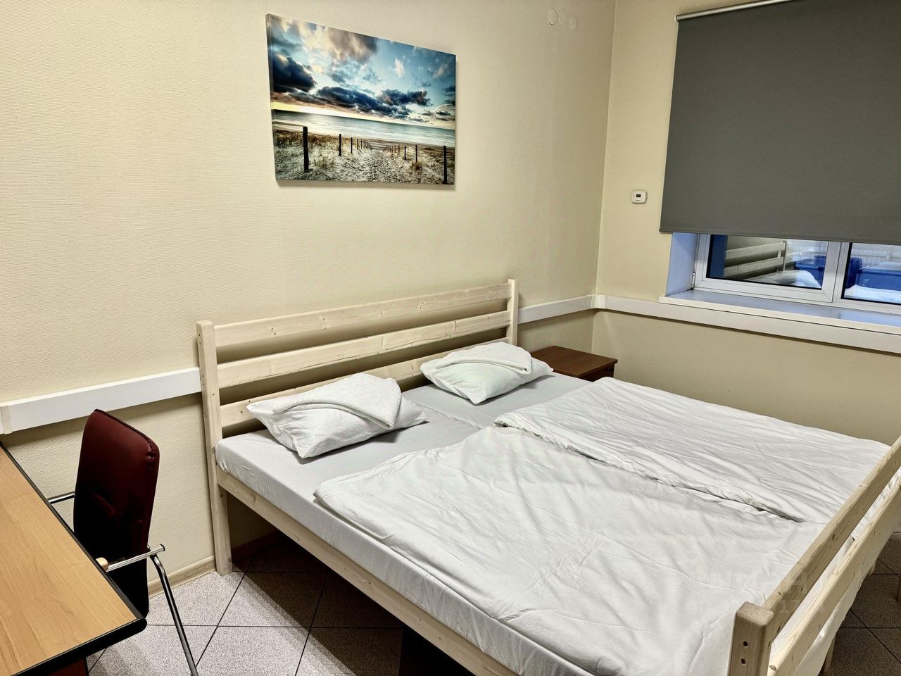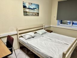 Двухместная комната с двухспальной кроватью super king-size (200180) с электронным замком площадью от 14 до 20 кв.м. для семейной пары или спутников. Постельное х/б белье и банное полотенце включено в стоимость и уже заправлено. Бесплатно: вай-фай, питьевая вода, парковка. В общей зоне есть кухня со всем необходимым для приготовления пищи, холодильник, электроплита. Продуктовый магазин через дорогу, можно приготовить завтрак .Так же рядом недорогое кафе. Остановки в центр города и в аэропорт в 100 метрах. До электрички к морю пешком 7 минут, можно на экспрессе доехать за 15 минут. До центра города около 10 минут на автобусе. До реконструированного Верхнего озера и парка аттракционов с колесом обозрения пешком один километр