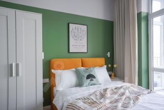 В квартире есть все, что нужно для комфортного проживания: двуспальная кровать, постельное белье и полотенца, необходимая посуда, микроволновка, телевизор, Wi-Fi, фен. В общем холле есть кофе-машина, аптечка, утюг, гладильная доска и кулер с питьевой водой.