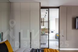 В спальне установлена огромная кровать с ортопедическим матрасом, что обеспечит вам здоровый и крепкий сон. Это идеальное место для отдыха после насыщенного дня, проведенного в городе.