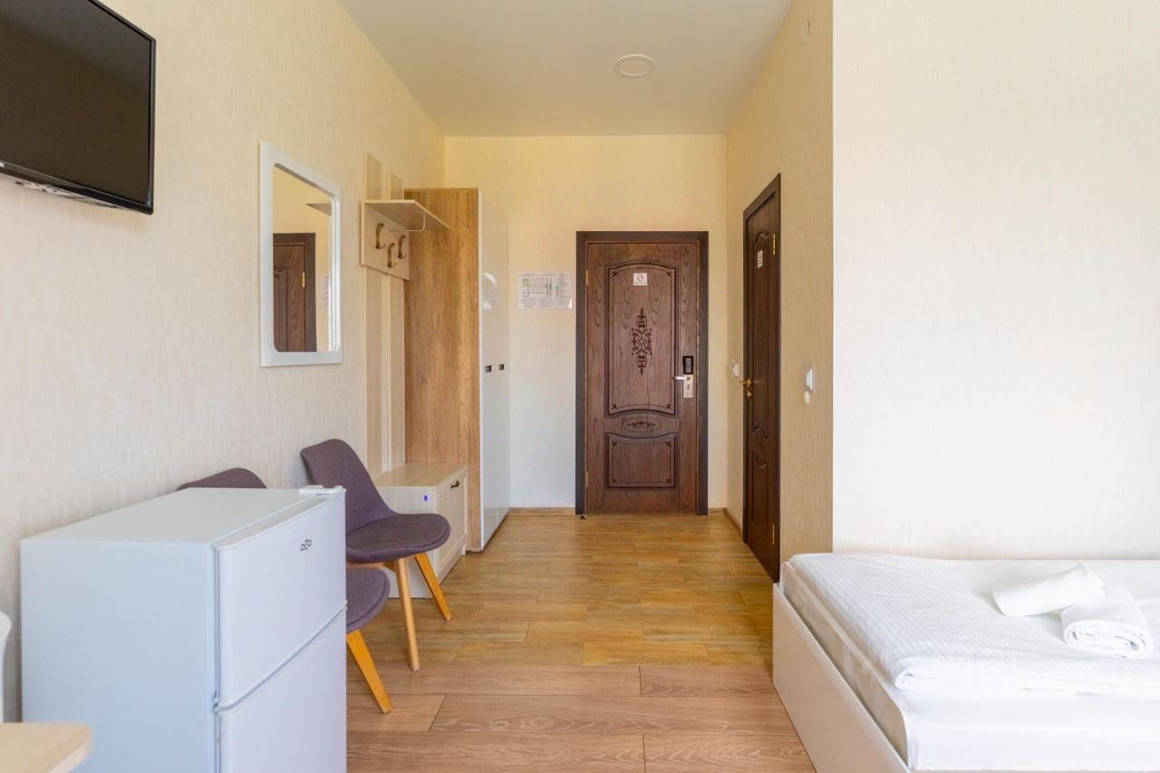 Комфортный номер с двумя односпальными кроватями, оборудованный плоским телевизором с цифровыми каналами, холодильником, душем, феном и шкафом для одежды. Во всех номерах есть собственная душевая и туалет. Бесплатная для Гостей на весь период проживания на закрытой территории. Гостиница расположена в новом здании рядом с тихим зелёным парком. В шаговой доступности 3 супермаркета, кафе, фитнес-клуб, автобусные остановки. Стойка регистрации открыта круглосуточно.