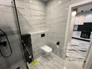 В квартире есть всё необходимое для жизни: в комнате и на кухне установлена мебель. Просторная кухня-гостиная площадью 20 кв. м оборудована холодильником, посудомоечной машиной и стиральной машиной. В комнате вас встретит уютный диван и телевизор для вечернего отдыха. Совмещённый санузел с душевой кабиной выполнен в светлых тонах. Также есть лоджия для приятных вечеров на свежем воздухе.