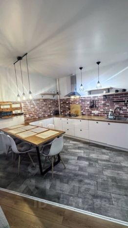 Кухня-гостиная оборудована газовой варочной поверхностью, вытяжкой, духовым шкафом, микроволновой печью и холодильником.