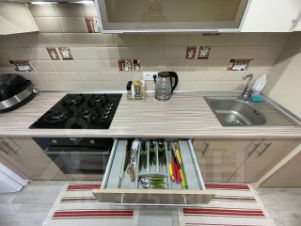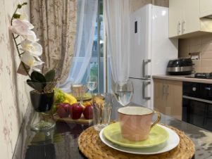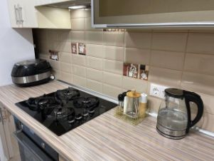 Квартира оснащена всем необходимым для комфортного проживания: 2 угловых раскладных дивана с ортопедическим основание, раскладное кресло на лоджии, комфортная современная кухня со встроенной техникой, полный комплект посуды, эл.чайник, микроволновая печь, мультиварка, чай и кофе. Автономное отопление, высокоскоростной wi-fi интернет, телевидение.