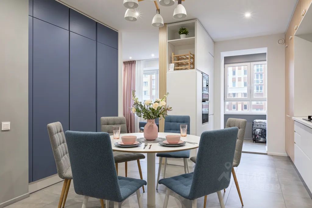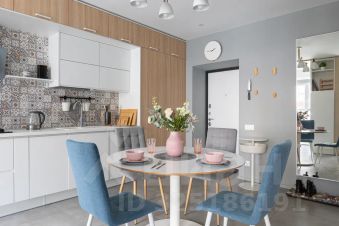 Интерьер квартиры разработан профессиональным дизайнером, гармонично соединяя комфорт и функциональное удобство. Кухня оснащена современной бытовой техникой и дополнена большой обеденной зоной. Спальная комната отличается особой атмосферой уюта, гарантирующей полноценный отдых после активного дня, а пространство для отдыха с телевизором станет отличным местом для вечернего расслабления.