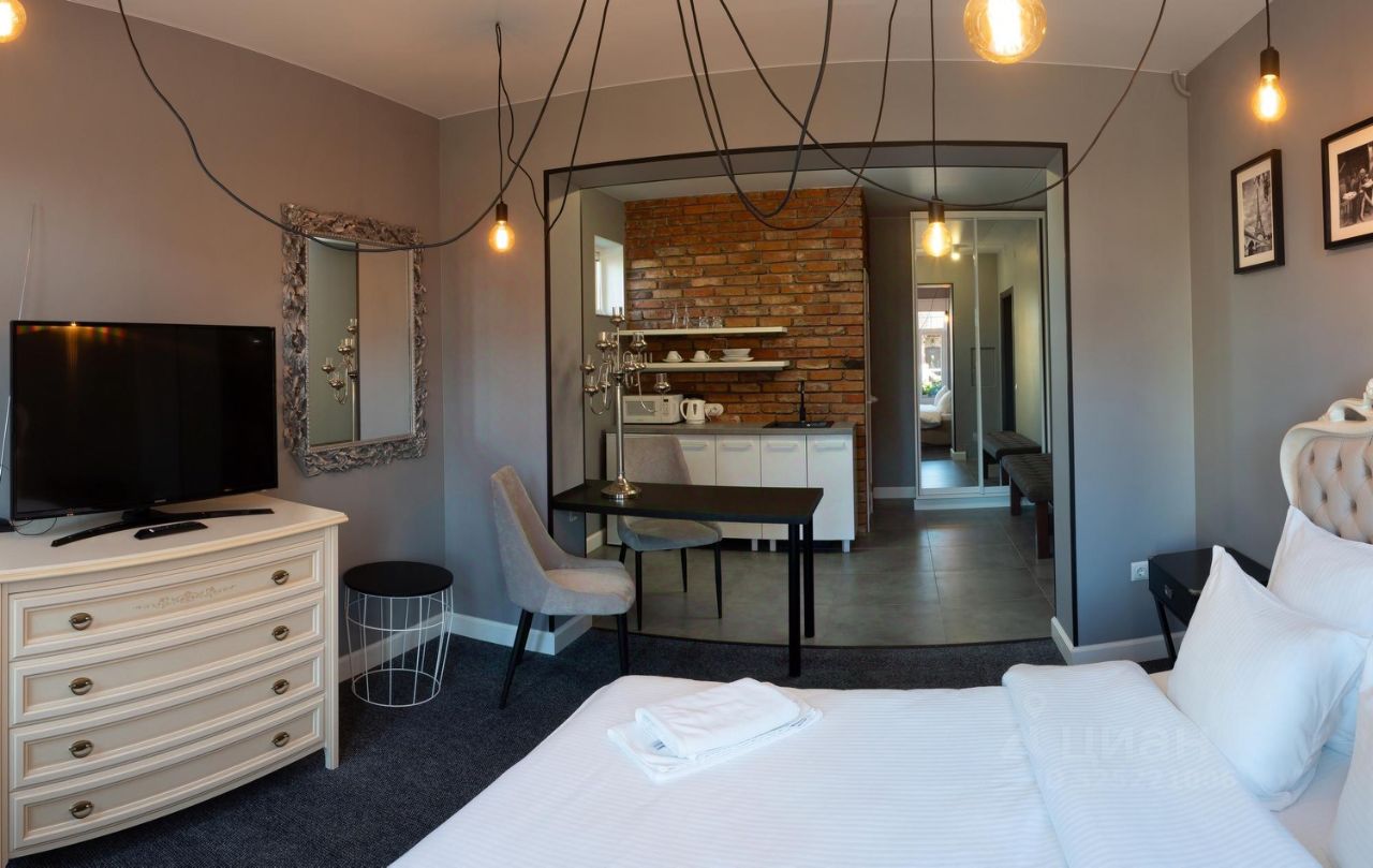 В студии: Двухспальная кровать, два стула,стол, телевизор, вай-фай, шкаф