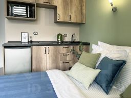 В каждой студии полностью оборудованная мини-кухня с микроволновой печью, гостиный уголок, телевизор с плоским экраном, стиральная машина и собственная ванная комната с душем.