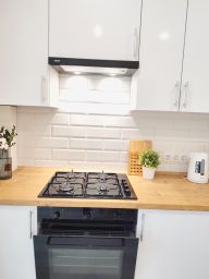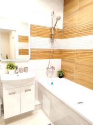 Квартира оборудована всем необходимым для комфортного отдыха и проживания: большая кровать с ортопедическим матрасом, удобный раскладной диван, ТВ в комнате, высокоскоростной Wi-Fi. Отдельная кухня, оборудованная всем необходимым для комфортного приема и приготовления пищи: плита, духовой шкаф, эл.чайник. Просторная ванная комната, есть фен, стиральная машина, принадлежности для глажки и сушки белья.