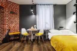 В квартире с комфортом могут разместиться два человека. В квартире есть: кухонный уголок и обеденная зона, телевизор с кабельными каналами и смарт тв. Кухня оснащена: холодильником плитой, электрическим чайником, микроволновой печью, кофеваркой, чай, кофе, сахар, соль всегда в наличии