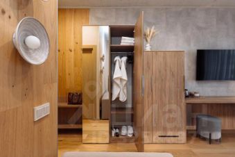 Кухня оснащена: имеются микроволновая печь, чайник, кофемашина, посуда, чай, кофе, соль, сахар. Ванная комната: тропический душ, стиральная машина, фен, гигиенические принадлежности. В апартаментах постелен паркет, тёплый пол. Прикроватные тумбы выполнены из массива дерева.