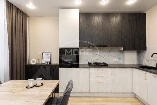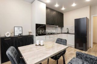 Кухня гостиная оснащена необходимой мебелью и техникой: диван, стол, стулья, кухонный гарнитур, варочная панель, вытяжка, духовой шкаф, холодильник. В спальне имеется 2 спальная кровать с ортопедическим матрацем, стол. Санузел совмещен, оснащен ванной, в коридоре гардероб.