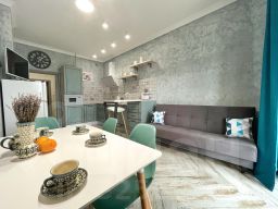 Квартира оборудована всем необходимым для комфортного проживания: двуспальная кровать, диван, стиральная машина, микроволновая печь, холодильник, тостер, фен, телевизор, утюг, пылесос, сушилка для белья, гладильная доска, турка для приготовления кофе, Wi-Fi.