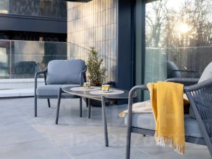 Два балкона с уютной зоной отдыха, откуда открывается вид на колесо обозрения и Куршскую косу.