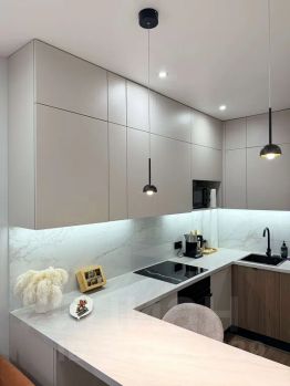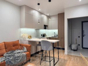 В квартире современный ремонт, а также есть всё необходимое для проживания гостей от 1 до 3 человек. Спальные места: большая двуспальная кровать и раскладывающийся односпальный диван на кухне, укомплектованные чистым постельным бельём.