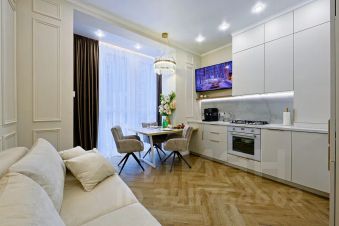 Классическая эстетика: Высокие потолки 3 метра, пол из натурального итальянского дуба, благородные материалы и ткани.