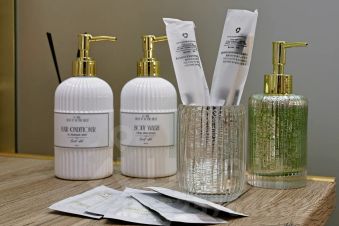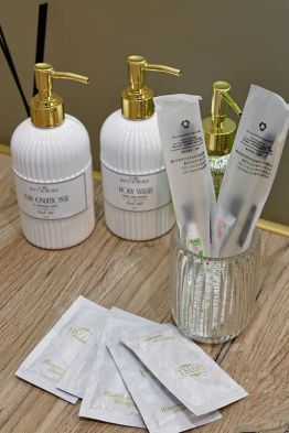 Гигиена: Наборы одноразовых зубных щёток с пастой, бритвенные станки, гель для бритья. Шампунь, кондиционер, гель для душа премиум-класса.