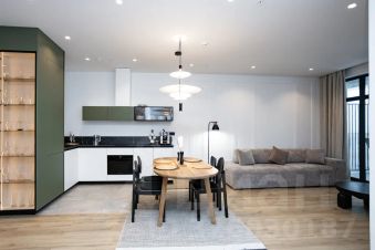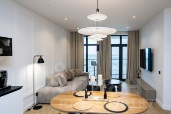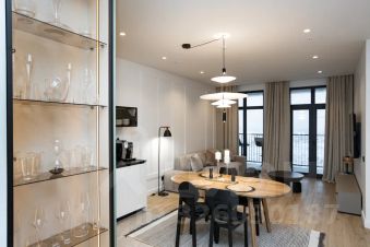 В квартире просторная гостиная с раскладным диваном, объединённая с полностью оборудованной кухней и обеденной зоной. Две отдельные спальни с двуспальными кроватями и качественными матрасами обеспечивают комфортный сон и приватность.