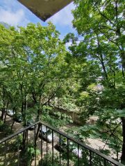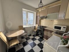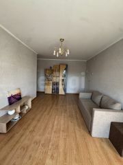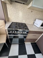 Комнаты смежные, на кухне установлен современный гарнитур, есть микроволновая печь, духовая печь, газ плита и обеденная зона. В большой комнате есть большой письменный стол с телевизором и шкаф для разнообразных вещей, также имеется выход на балкон, балкон не застеклён. В одной из спален есть комфортабельный раскладной диван, в другой спальне есть диван и книжные полки.