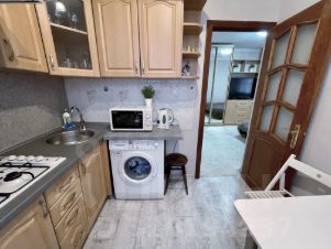 В квартире сделан косметический ремонт, что создает приятную атмосферу для комфортного проживания. В наличии вся необходимая мебель как на кухне, так и в комнате. Из техники есть холодильник и телевизор, стиральная машина, микроволновая печь, утюг, фен, чайник. Санузел совмещенный, с ванной, что позволяет расслабиться после рабочего дня.