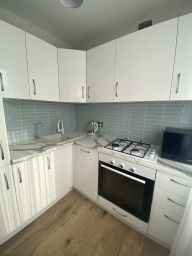 Однокомнатные апартаменты для 2гостей. Спальные места: двуспальная кровать. Квартира с современным ремонтом, оборудована всей необходимой мебелью и техникой: телевизор, плита, духовка, микроволновая печь, стиральная машина, холодильник, а также посуда, постельное белье, полотенца, утюг, гладильная доска. Так же имеется удобное рабочее место, стол и кожаное кресло.