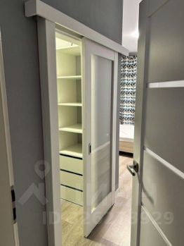 Комната 2: двуспальная кровать, прикроватные тумбочки, зеркало, гардеробная, застекленная лоджия