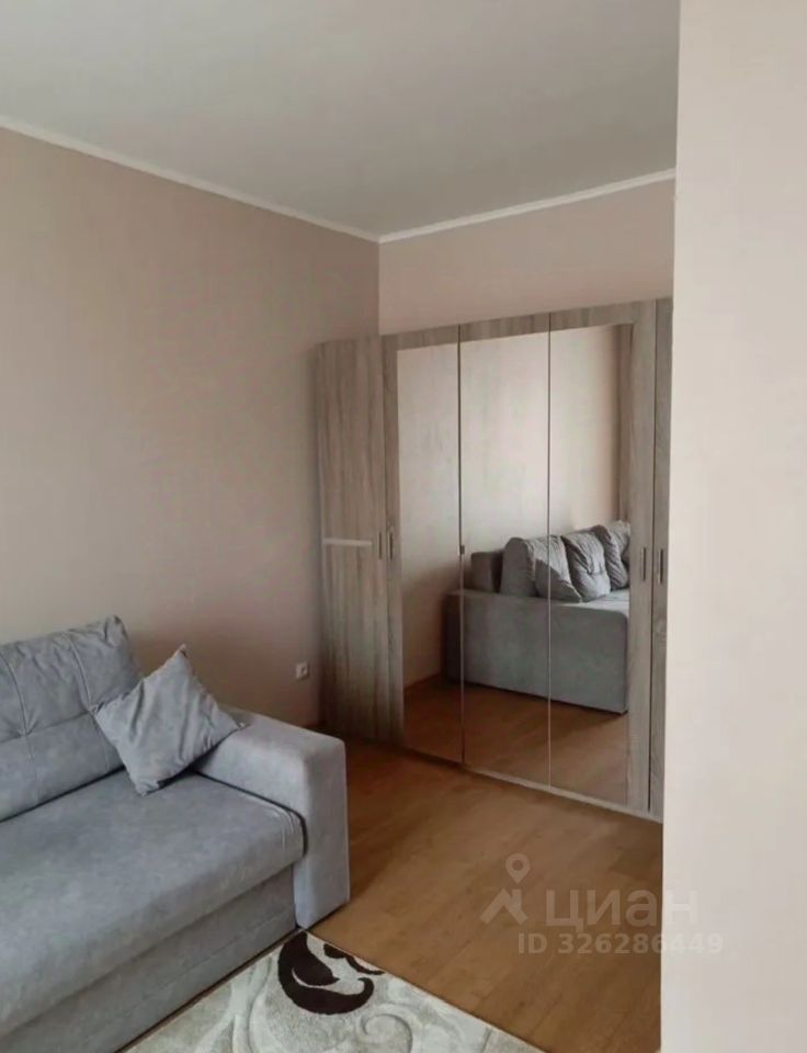- Светлая гостиная с большим диваном для отдыха, вместительный шкаф для