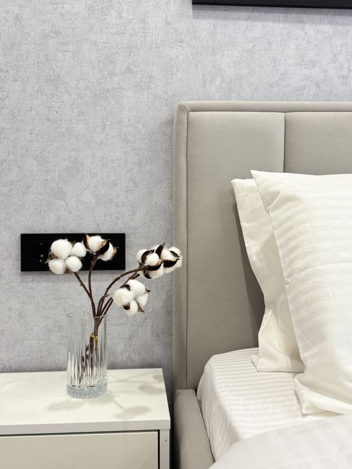 В спальне кровать 160*200 с ортопедическими подушками для комфортного сна. Качественное постельное белье, вместительный шкаф для одежды